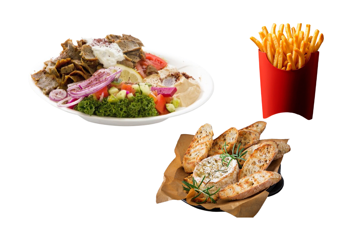 Grlic Bread, Doner Beef, Fries, Salad