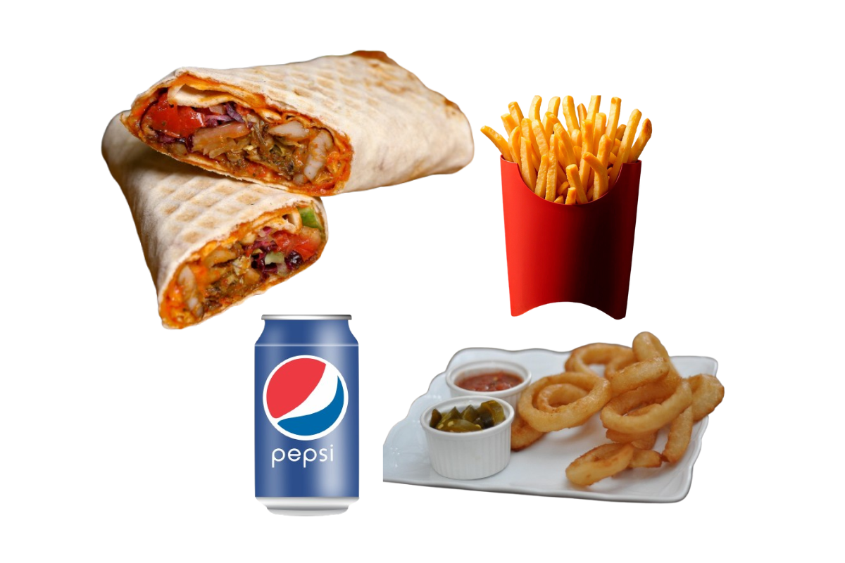 Wrap Shawarma, 04 Onion Ring, Fries, Can